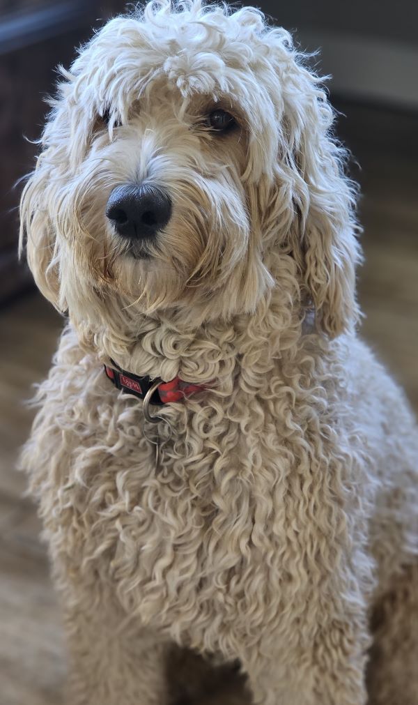 Mia O Maya: F2 Female. She has a fleece coat very low shed. She has a super sweet personality that loves to please. She is a real show stopper. 45 lbs Her puppies are super fancy! retired